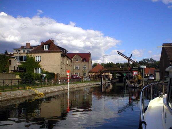 Wir warten vor der Hubbrücke Storkow auf die Durchfahrt-9.6.05