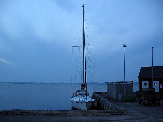 Die Nicole, eine Dufour Gib Sea 33, zur Nacht auf der Insel Lyoe.