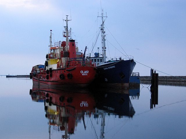 Für einen kurzen Moment zeigt sich fast spiegelglattes Wasser im Hafen von Marstal.