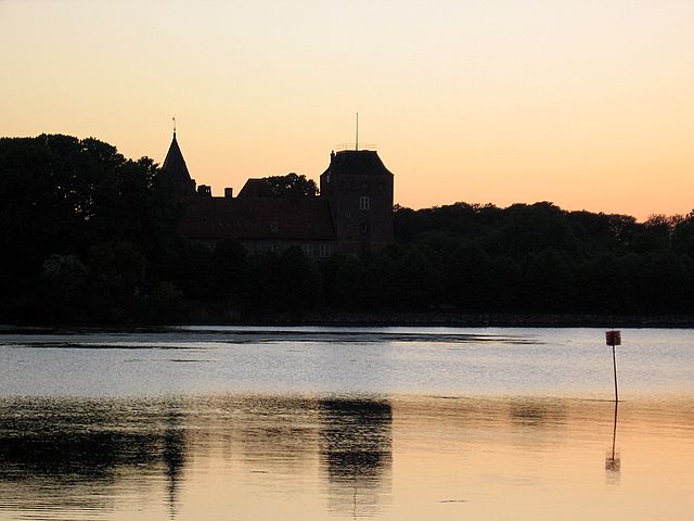 Das Schloss Aalholm.Es wird Nacht in Nysted.