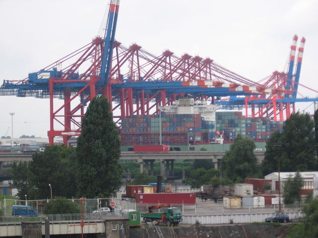 Frachtschiffreise -- Blick auf das CTA (Container Terminal Altenwerder) Hamburg