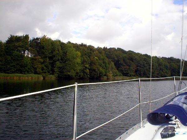 Blick über die Seereling auf das bewaldete Ufer des Haderslev Fjord's.