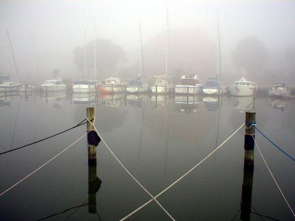 Das dänische Haderslev im Morgennebel. Im September keine Seltenheit hier im Fjord.
