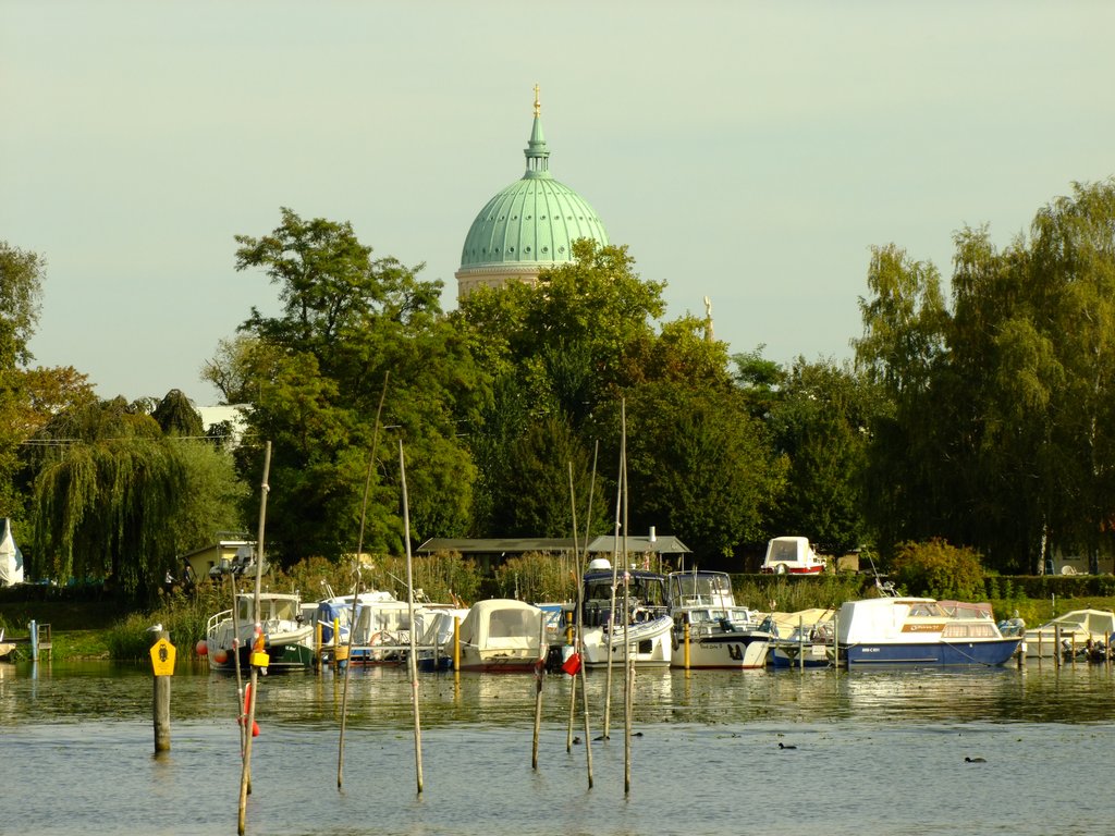 Die Nikolaikirche Potsdam wie man sie vom Boot aus sieht