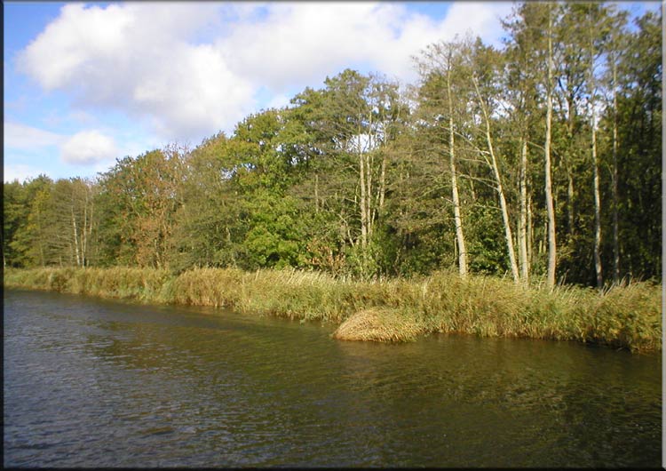 Bewaldete Uferlandschaft am Peenefluss in Mecklenburg. Der deutsche Amazonas.