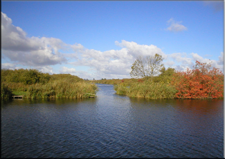 Sonne, Wasser und Natur am Peenefluss. Wolken und Wind bilden den