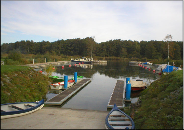 Wasserwanderrastplatz Stolpe mit großer Steganlage. Ruhe im Herbst am