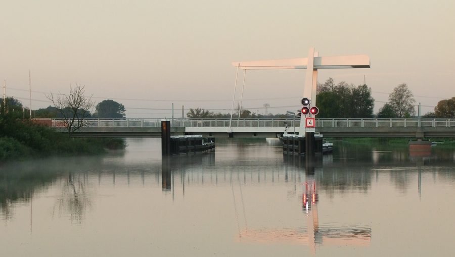 Wir warten auf die Öfffnung der Zugbrücke Loitz.