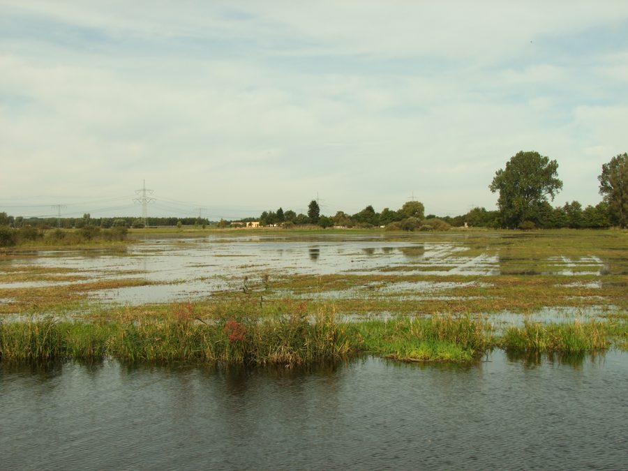 Der länger anhaltende Ostwind staut den Peenefluss und sorgt in den Auen für Hochwasser.