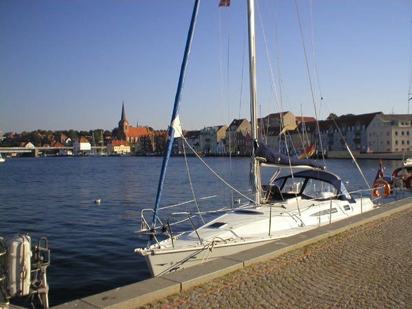 Der letzte Tag empfängt uns mit herrlichem Wetter. Die Filou in Sonderborg.